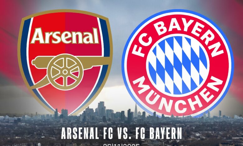 تقام مباراة أرسنال وبايرن ميونخ في مساء يوم الأربعاء الموافق ٢٦ نوفمبر ٢٠٢٥ على أرضية ملعب الإمارات بالعاصمة الإنجليزية لندن ضمن مباريات الجولة الخامسة من مرحلة الدوري في دوري أبطال أوروبا.