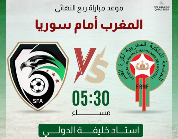 توقيت مباراة سوريا ضد المغرب في كأس العرب ٢٠٢٥