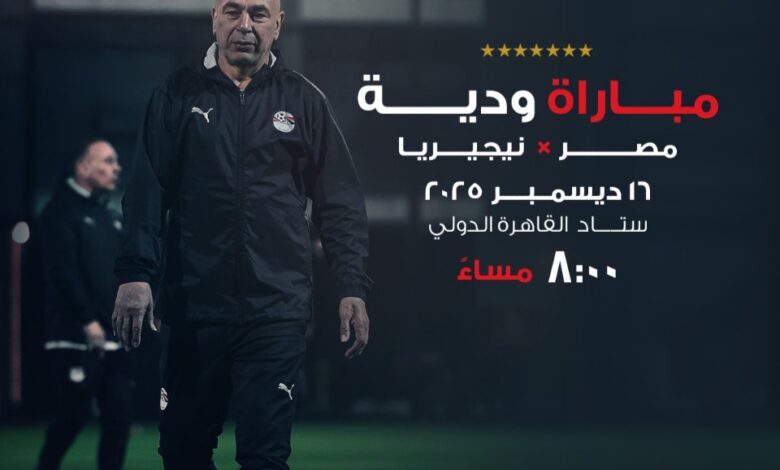 تقام مباراة مصر ونيجيريا في مساء يوم الثلاثاء الموافق ١٦ ديسمبر ٢٠٢٥ على أرضية ملعب القاهرة الدولي بالعاصمة المصرية القاهرة ضمن مباراة دولية ودية استعدادا للتحديات القادمة مثل المشاركة في النسخة القادمة من بطولة كأس الأمم الأفريقية التي تنطلق بشكل رسمي يوم الإثنين القادم.